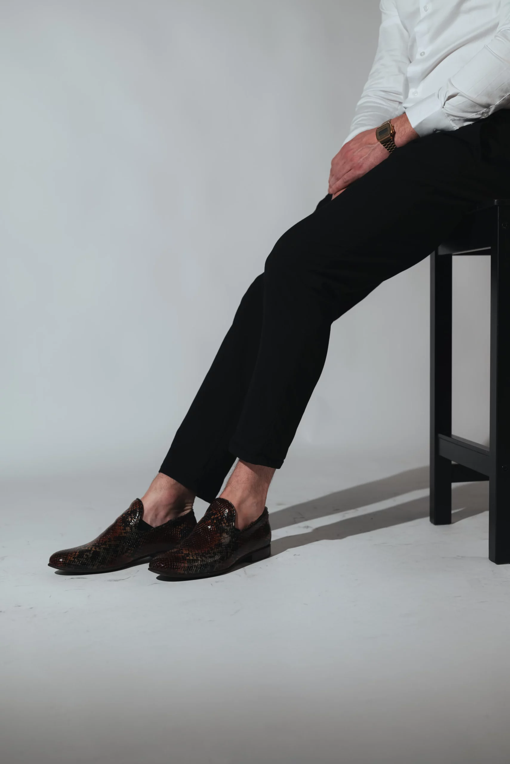 U nas każdy mężczyzna znajdzie buty dla siebie — od klasycznego brązu i czerni po śmiałe kolory i wzory.