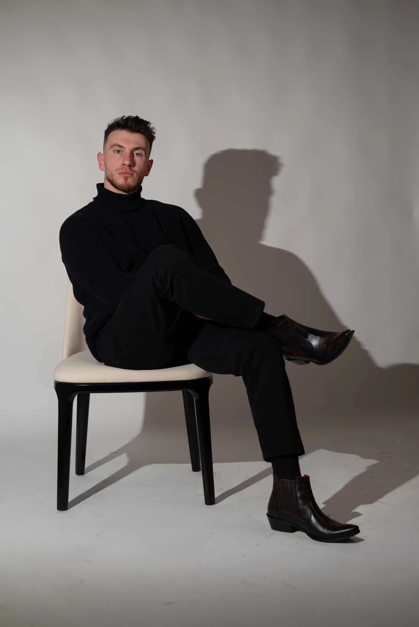 Kowbojki Męskie Skórzane Czarne Billy