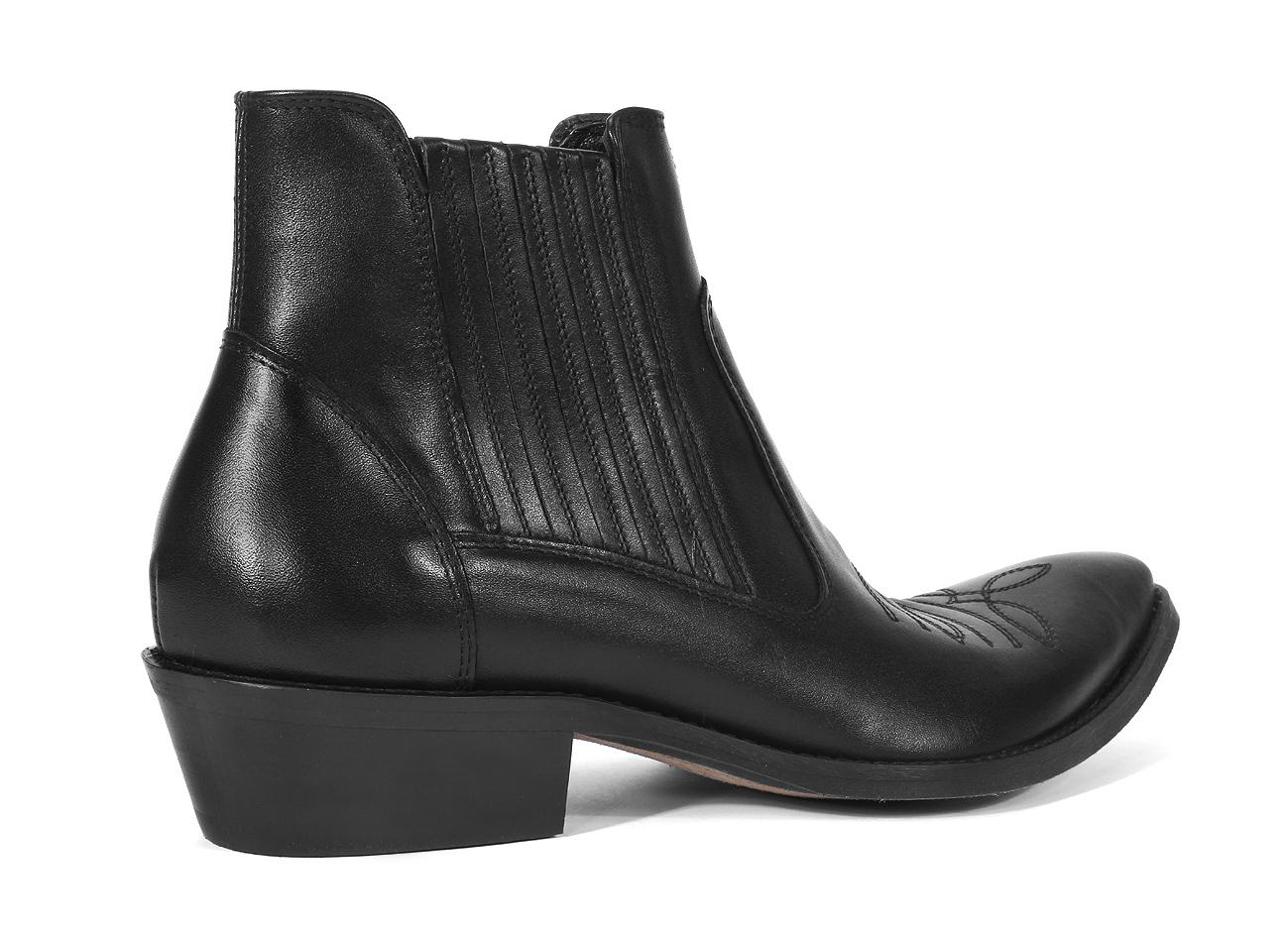 Kowbojki Męskie Skórzane Czarne Carlos - obrazek 2