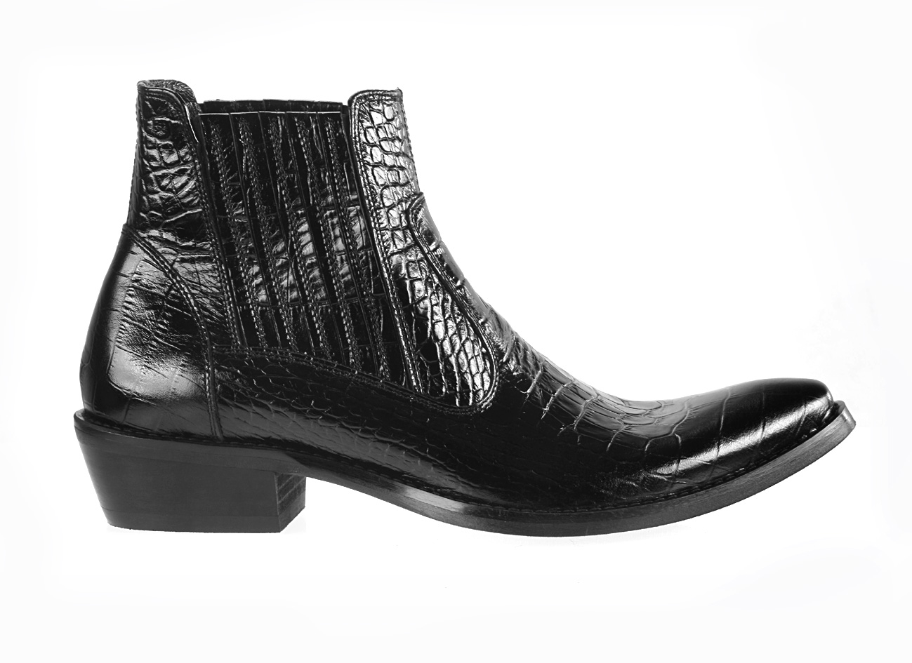 Kowbojki Męskie Skórzane Czarny Krokodyl Carlos - obrazek 4