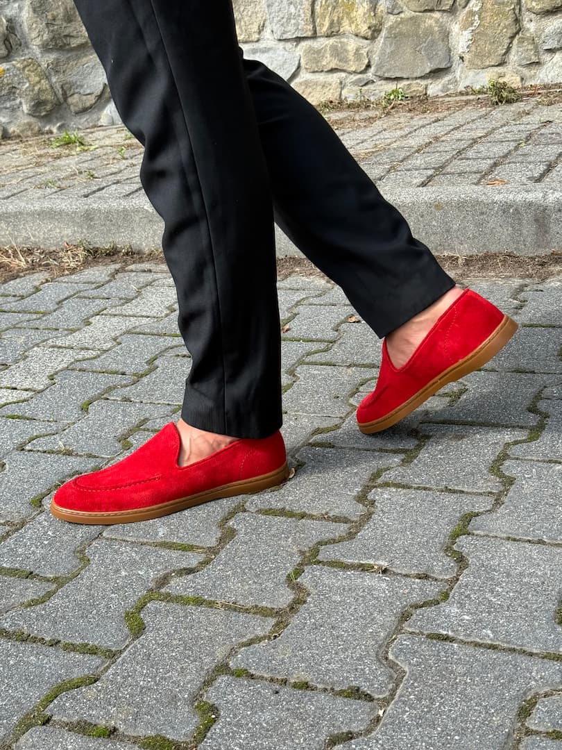 Mokasyny Męskie Skórzane Czerwone Zamszowe Luca