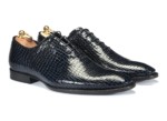 Te czarne oksfordy wyróżniają się nietuzinkowym wyglądem dzięki strukturze imitującej skórę krokodyla. Elegancki, a zarazem odważny design sprawia, że to idealny wybór dla mężczyzn, którzy chcą dodać swoim stylizacjom wyrazistego charakteru. Jeśli cenisz sobie oryginalność i nie boisz się wyróżniać, ten model jest stworzony właśnie dla Ciebie.