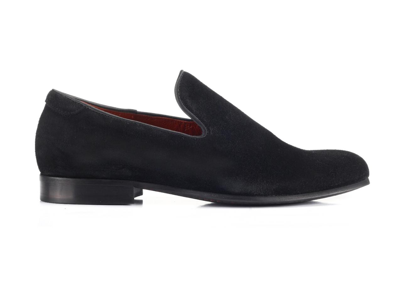 Mokasyny Męskie Skórzane Czarne Zamszowe Michael Wyprzedaż